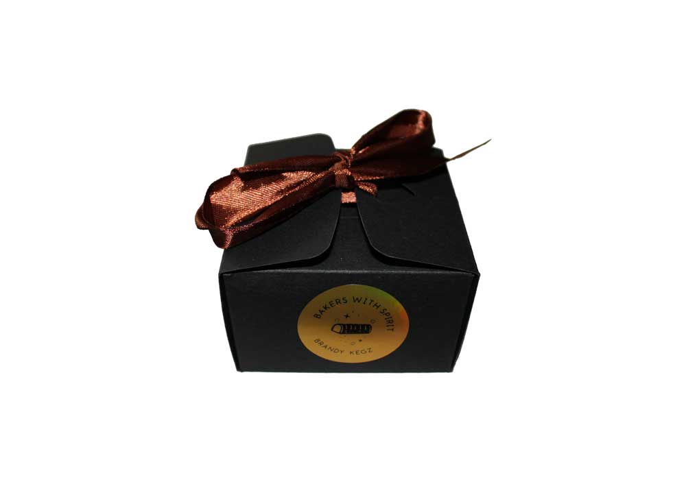 Sponge Cake, Covered in Chocolate, Infused with Alcohol and dusted with edible Gold. Each presentation box contains 2 x 90 grams.